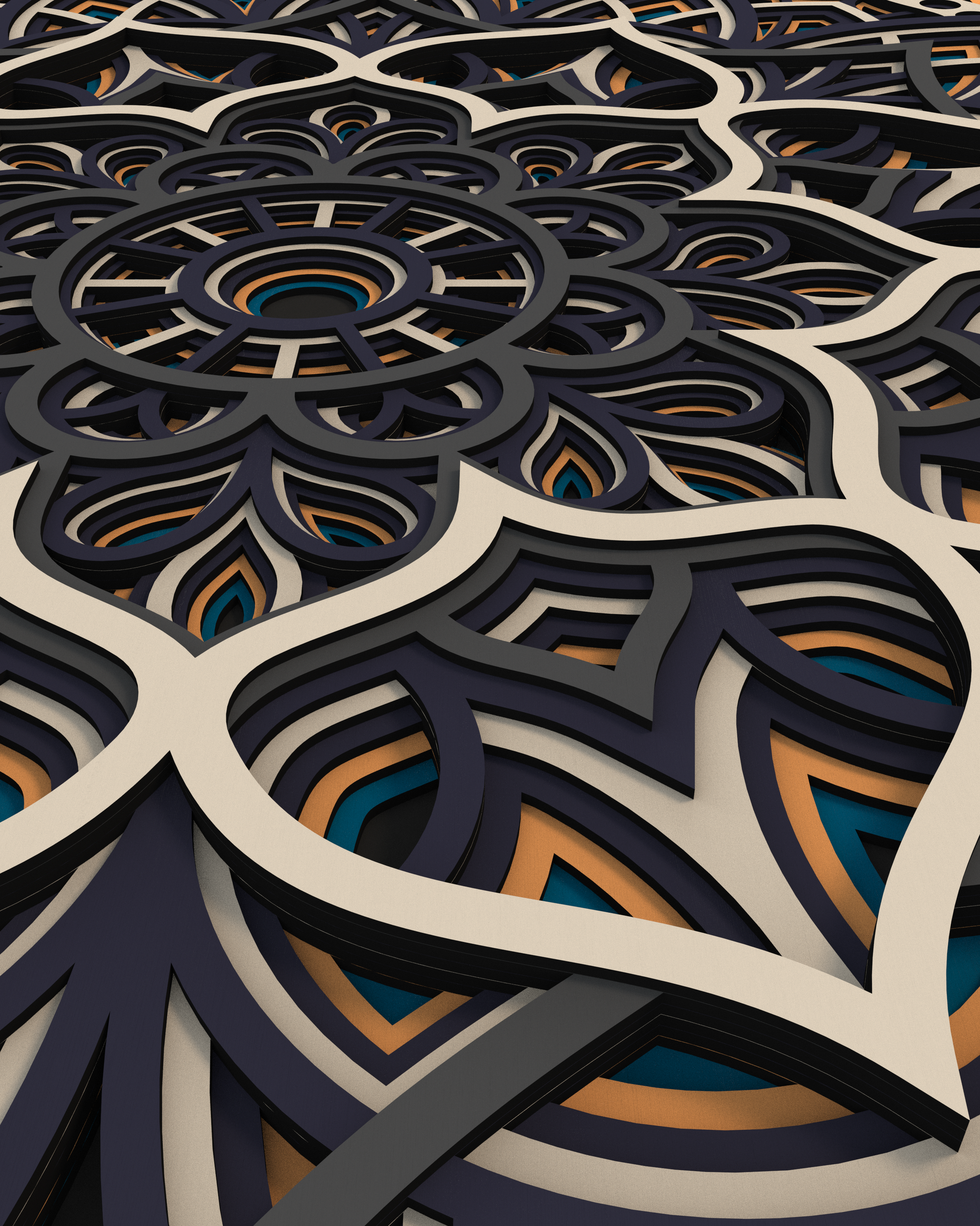 Elaris is a convergence of symmetry and elevation. Through layered geometry and deliberate rhythm, it radiates outward like a celestial bloom, precise yet fluid, structured yet alive. Each contour reveals harmony in contrast, where light defines form and darkness gives it depth.