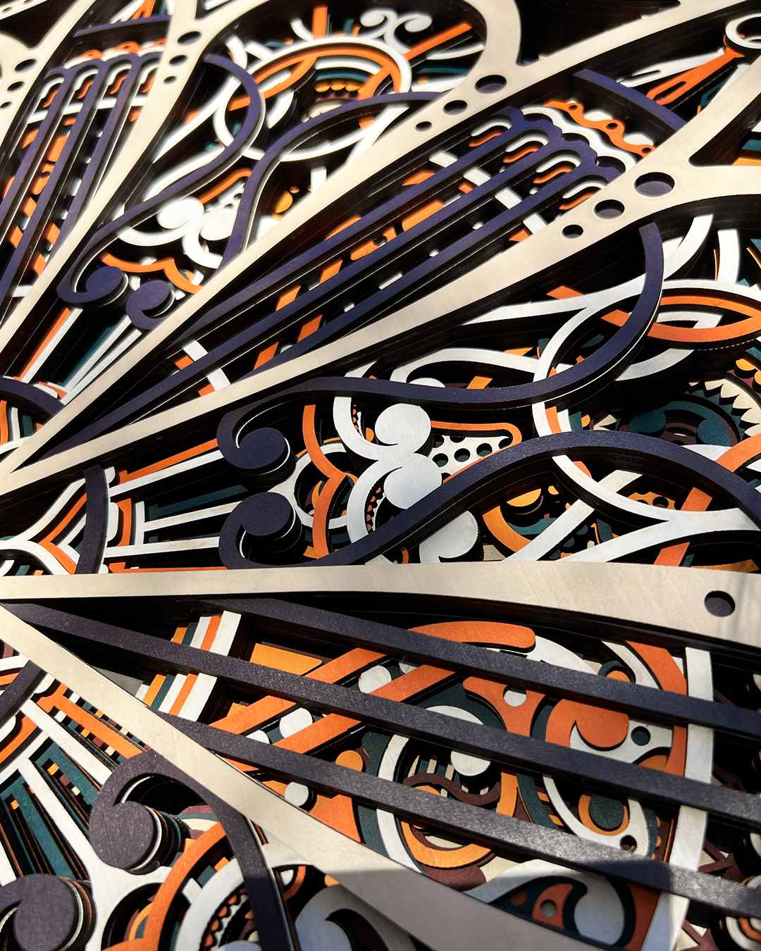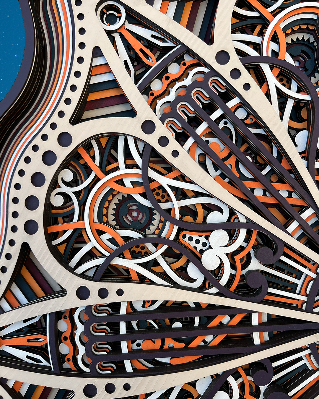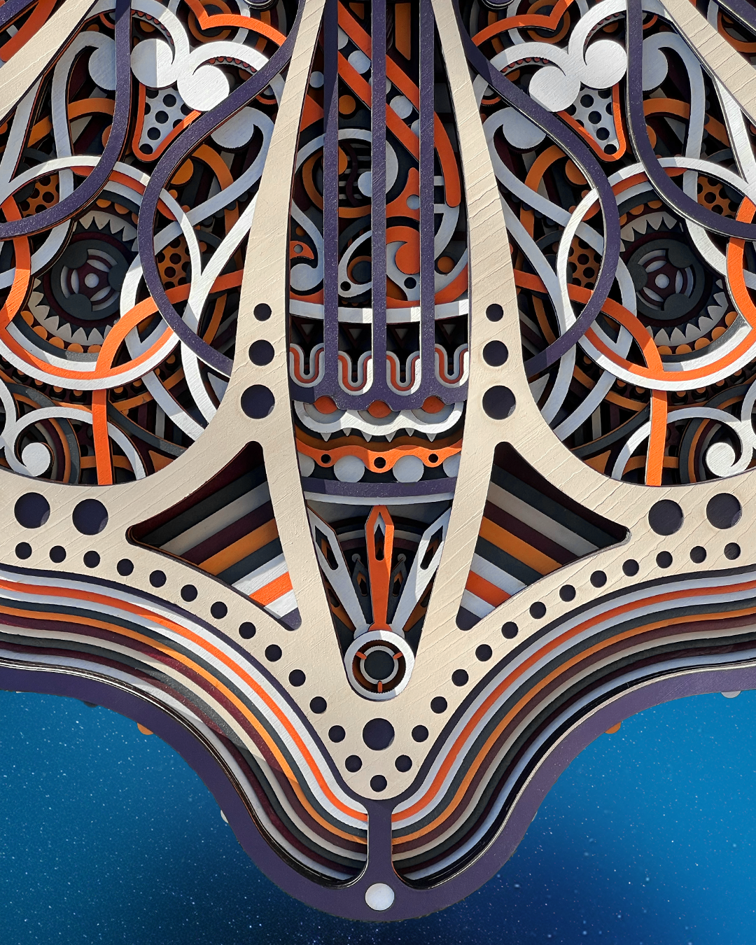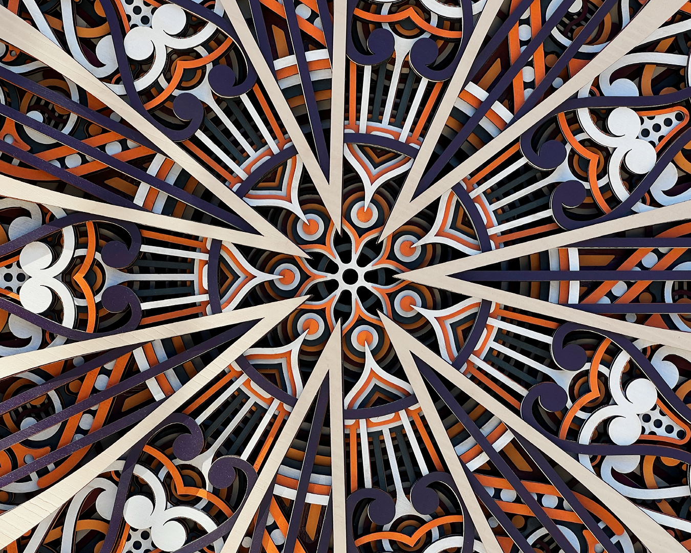 An artwork inspired by the seven-pointed star of Jordan, a symbol of pride. Its layered design guides the eye across intricate geometry, creating a sense of movement and discovery. The piece feels striking from a distance, yet continues to reveal delicate details as you explore it more closely.